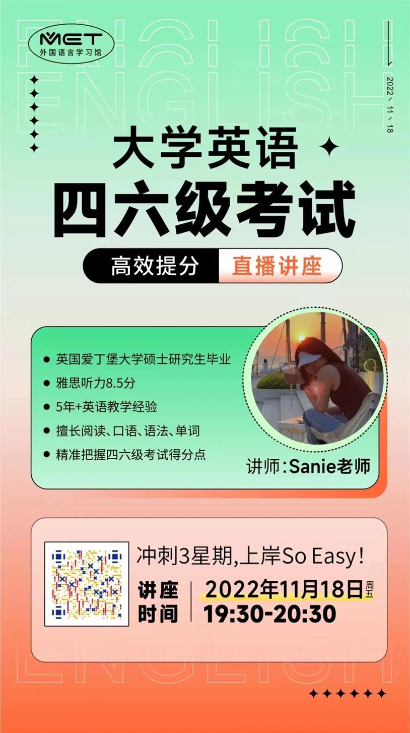 【今天,四六级直播讲座】 冲刺三星期,上岸So Easy!